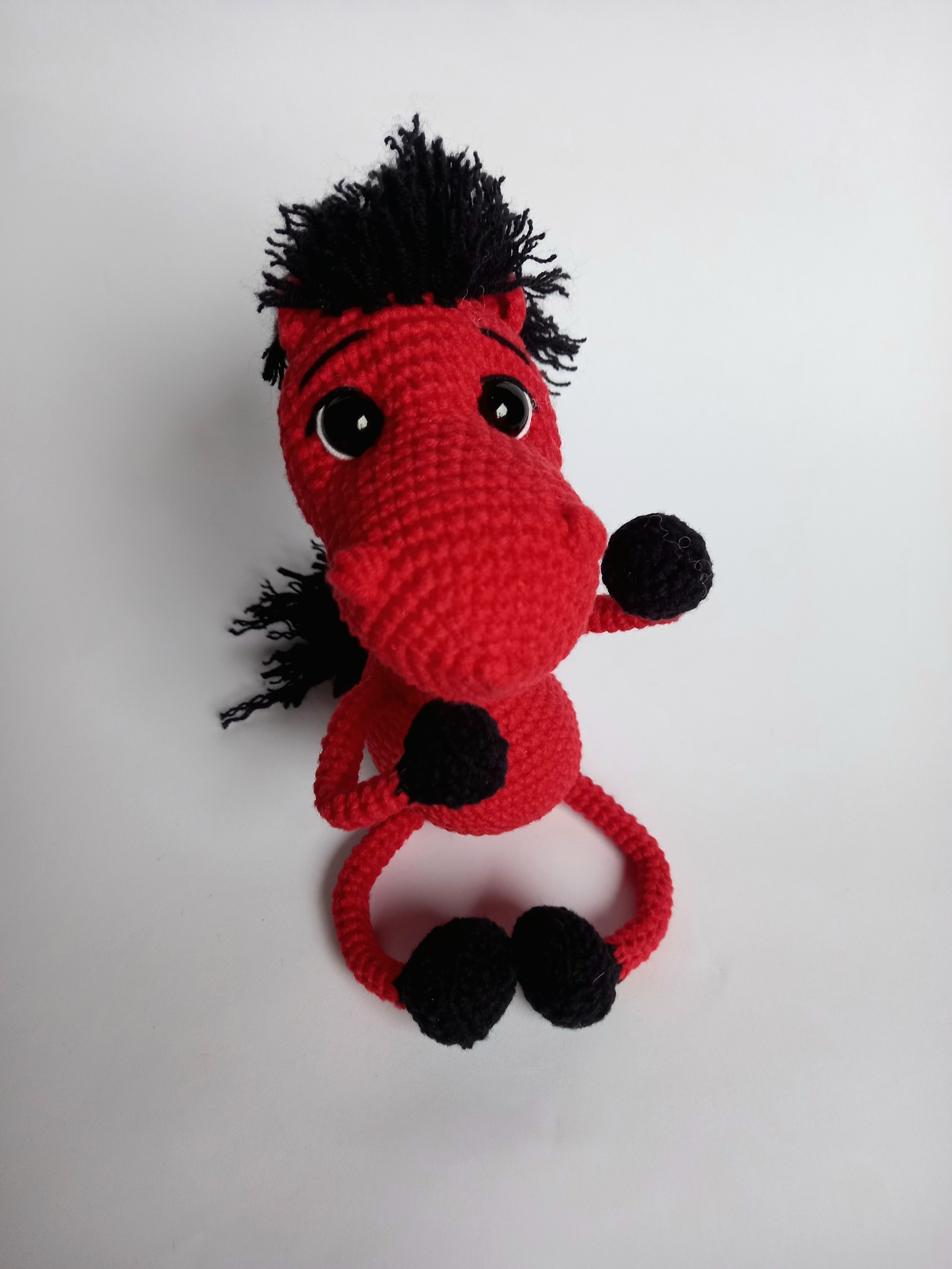 Šis raudonas nertas arkliukas – tikras rankų darbo žavesys, sukurtas su meile ir kruopštumu. Jis puikiai tiks kaip interjerinis žaislas ar miela dovana vaikui. Sodri raudona spalva ir smulkios nertos detalės suteikia jam išskirtinumo ir žaismingumo.