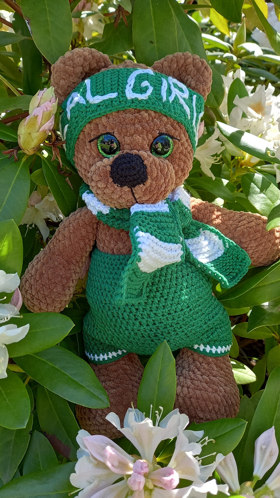 Šis mielas rankų darbo meškutis – tikras Kauno „Žalgirio“ fanas! Su savo žalia apranga ir šalikėliu jis visada pasiruošęs palaikyti mėgstamą komandą. Pagamintas iš švelnių, OEKO-TEX® sertifikuotų pliušinių siūlų, todėl ne tik atrodo smagiai, bet ir yra visiškai saugus vaikams.