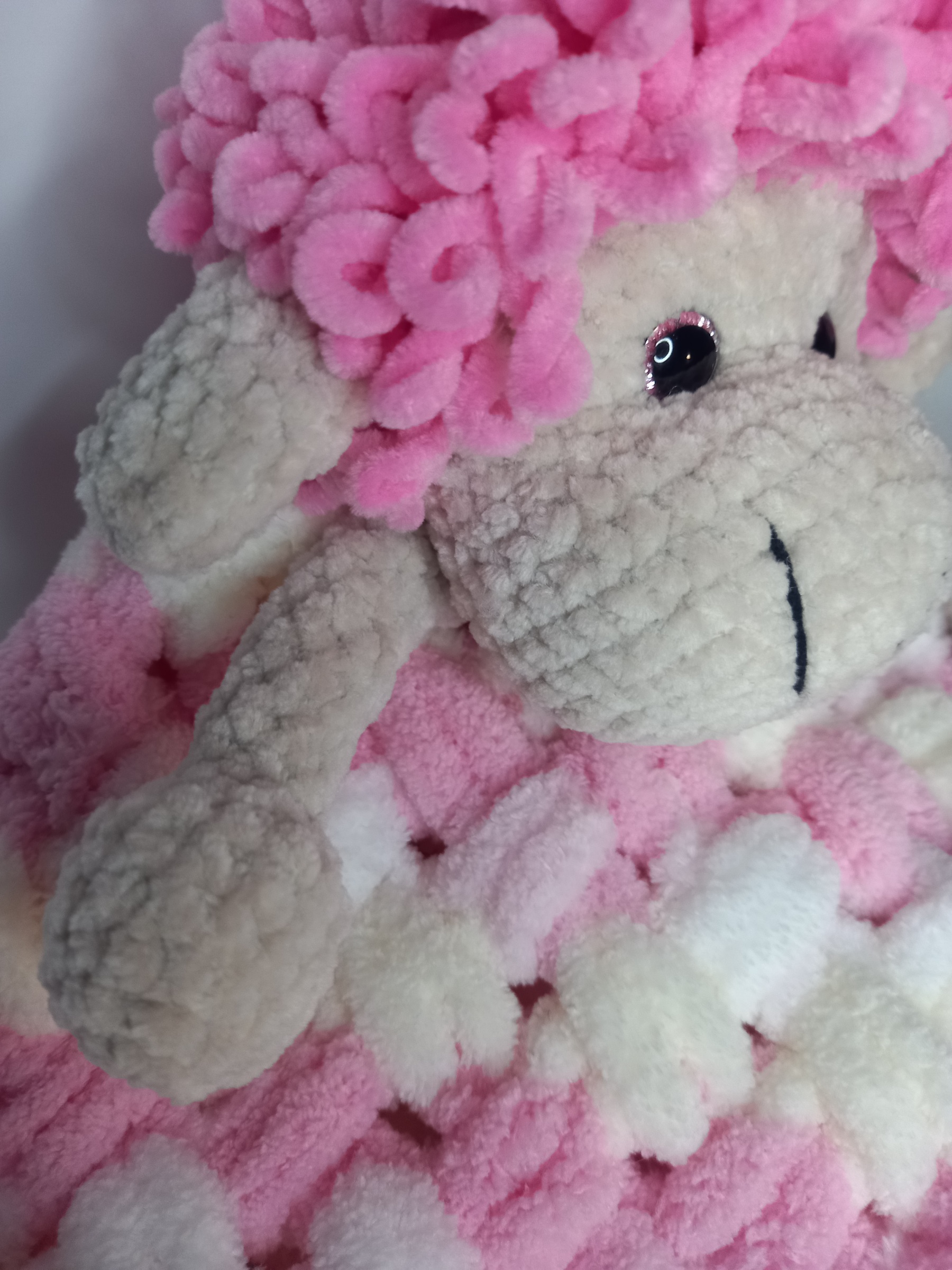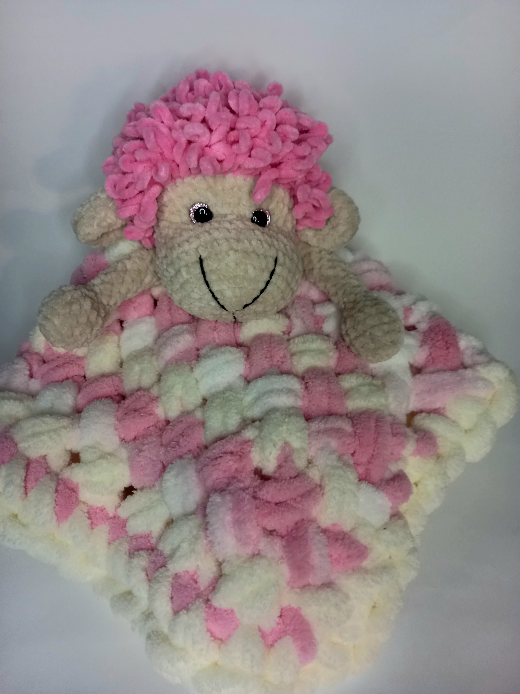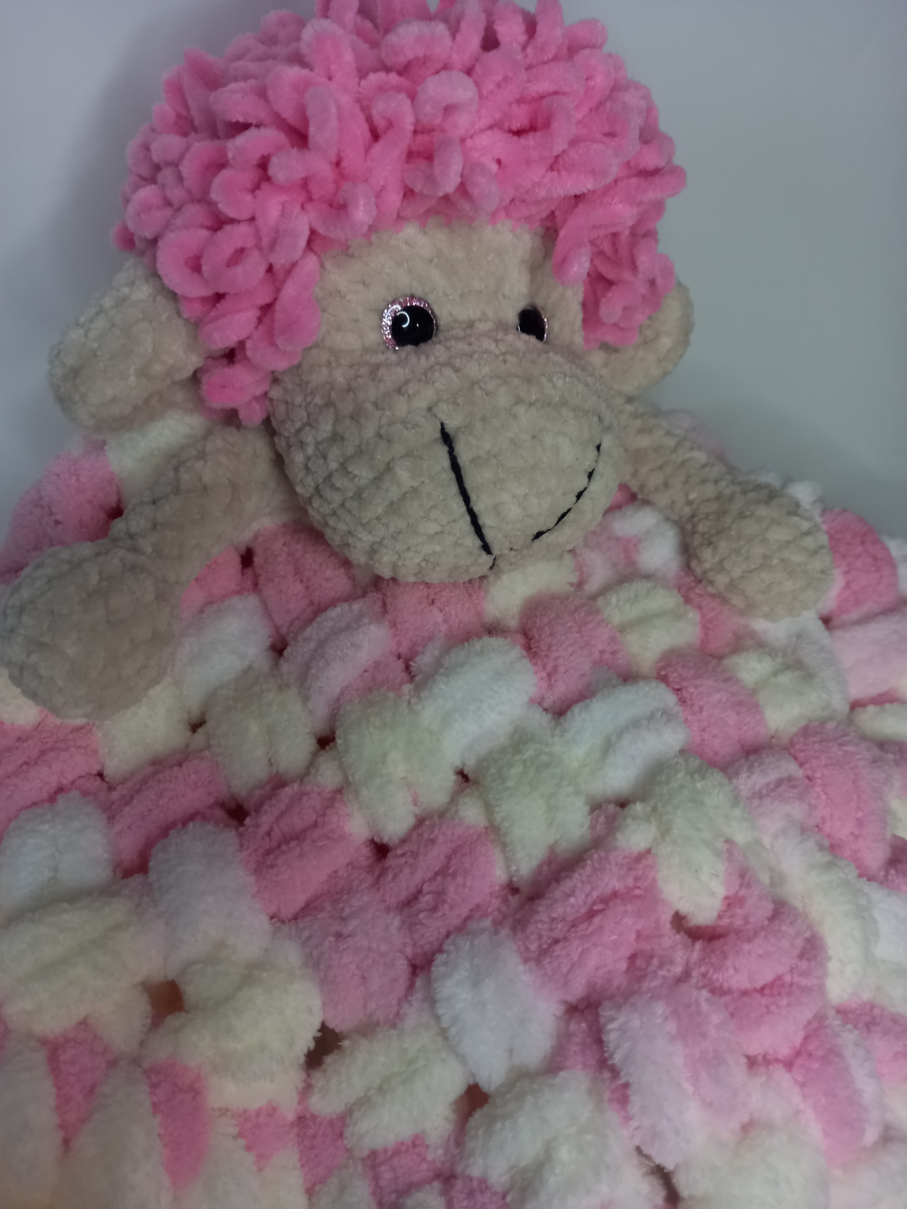 Šis rankų darbo nertas migdukas – puri avelė – sukurta kaip švelni miego draugė kūdikiui.