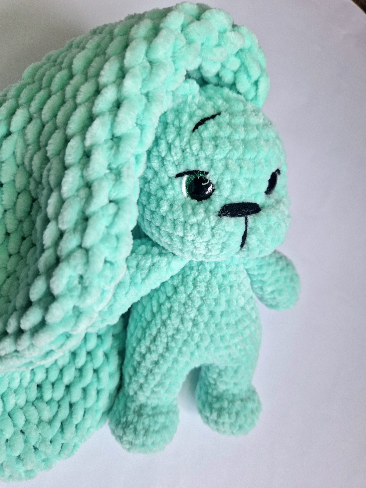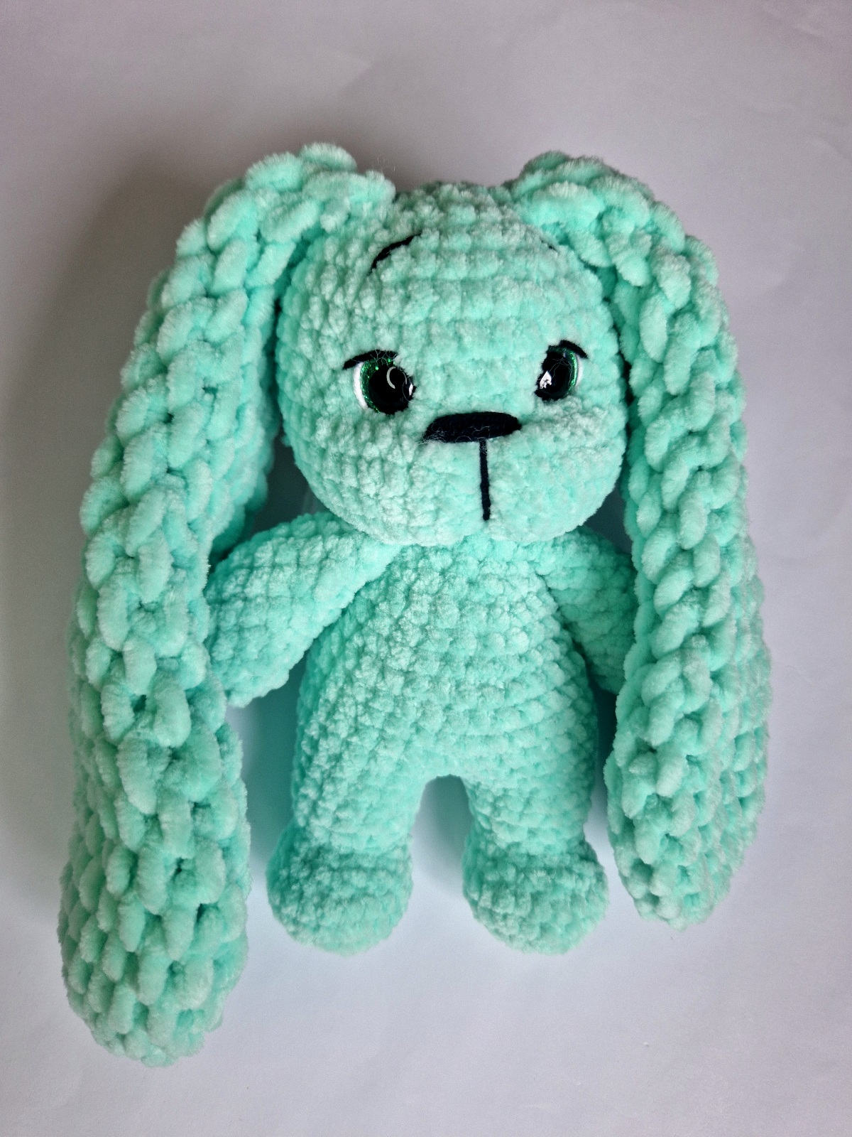 Rankų darbo nerta Mėtinė kiškutė „Kruopytė“ – švelnus ir mielas žaislas, sukurtas su meile ir kruopštumu. Kiekviena detalė yra nerta rankomis, todėl kiekvienas žaislas yra unikalus ir išskirtinis.