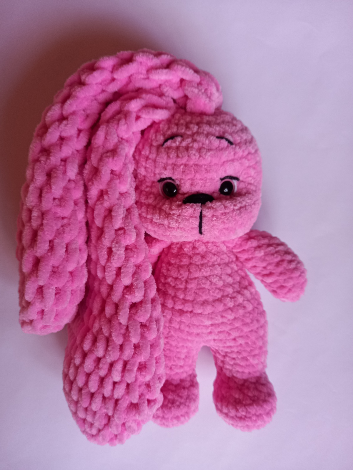 Rankų darbo nerta Rožinė kiškutė „Kruopytė“ – švelnus ir mielas žaislas, sukurtas su meile ir kruopštumu. Kiekviena detalė yra nerta rankomis, todėl kiekvienas žaislas yra unikalus ir išskirtinis.
